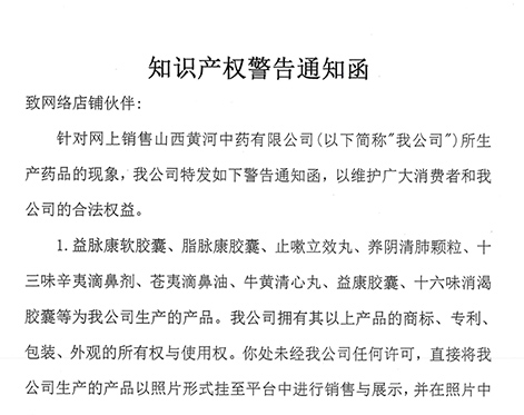 • 山西黃河中藥有限公司《知識產(chǎn)權(quán)警告通